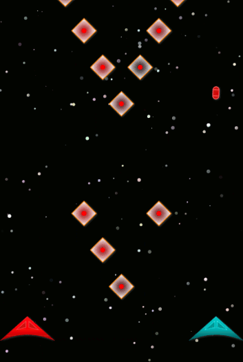 canvasgame is a demo two-player game, written in Javascript. It was written in one day to learn how to make an HTML5 game. Controls: a/e to move and o to fire missile for player 1, numpad 4/6 to move and 5 to fire area bomb for player 2.